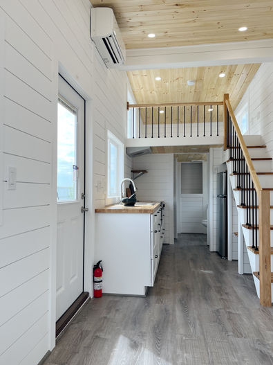 This 28’ tiny home is a versatile dream. The spacious open living area, with an added reading nook, is perfect for winding down, watching your favorite show or cuddling up and reading a book on a chilly day. Big enough to fit a 3 seat couch - if you want to host, or to fit a dining room table - if you want to use the area as a dining room. This tiny home is kid and pet friendly - it comes with a set of stairs that lead to the bedroom loft. With 13.5ft ceilings, the loft is very open and provides a lot of head space!